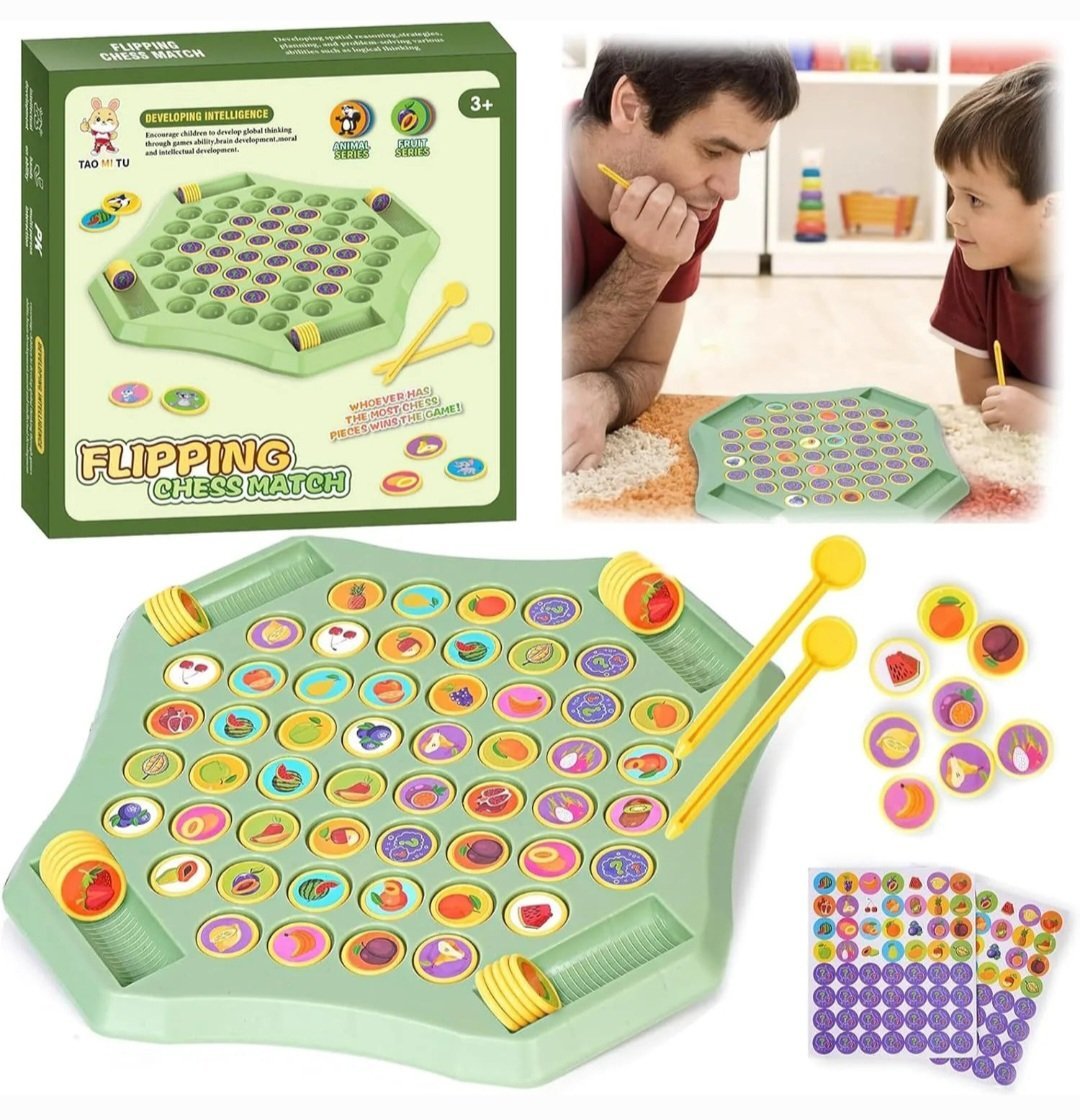 About Product & How To Play:【Interactive Game Experience】 Suitable for 2-4 players , With our matching game cards, can have fun while recognizing different animals and fruits through rich cartoon patterns, leading to an enjoyable experience enhance excitement and strategic thinking and Train reaction ability, helping families stay away from mobile phone screens 【Safe Material】The animal flip chess memory chess game contains 54 chess pieces, made of high-quality plastic materials, round and smooth, and has 54 animal sticker patterns, you can stick the pattern on each chess piece yourself, enhance hands-on ability.【How to Play】Two Player Animal Flip Chess, Place the prepared cards face down to start the game. Each player flip two cards in one time, if patterns are same, take them out and keep flipping; if patterns are different, place them face down and switch player until flipping all the cards, who gets more cards wins